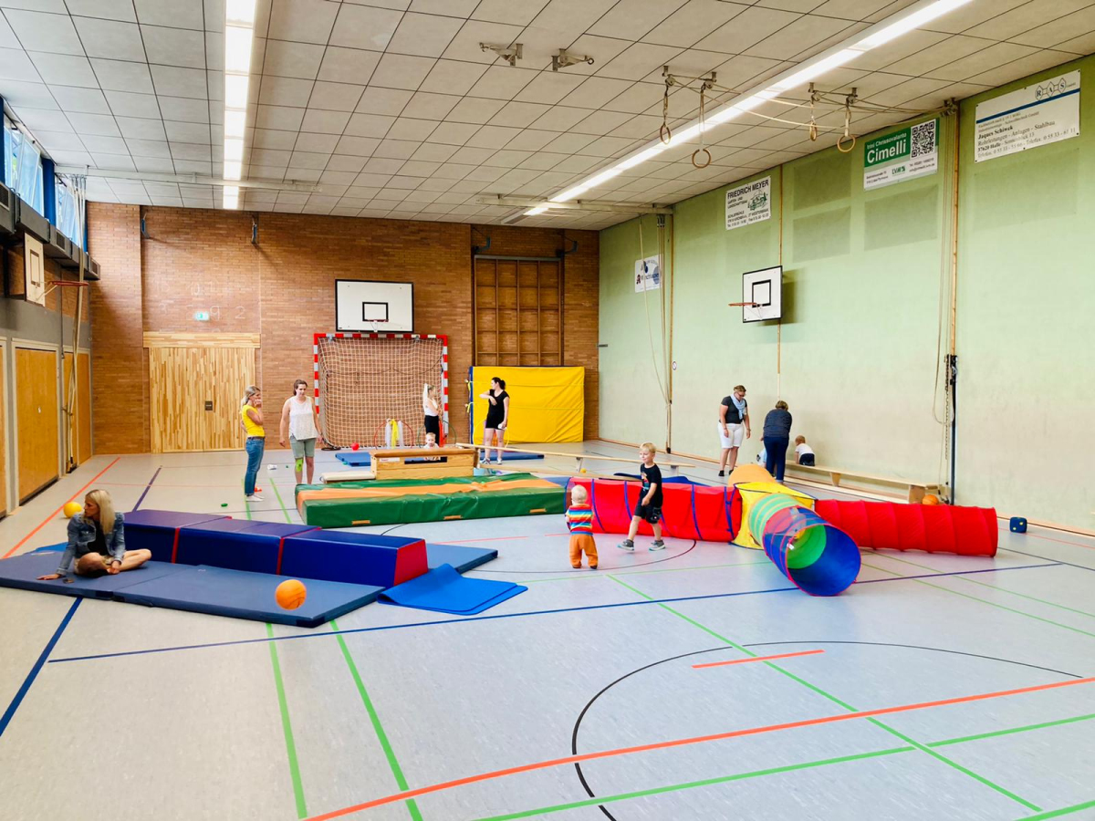 Bewegungsspaß für Groß und Klein, im Vordergrund steht ein frei wählbares Bewegungsangebot, welches die Kleinen nach eigenem Interesse aussuchen können. Abgerundet wird dieses mit einem Begrüßungs- und Abschlusskreis.